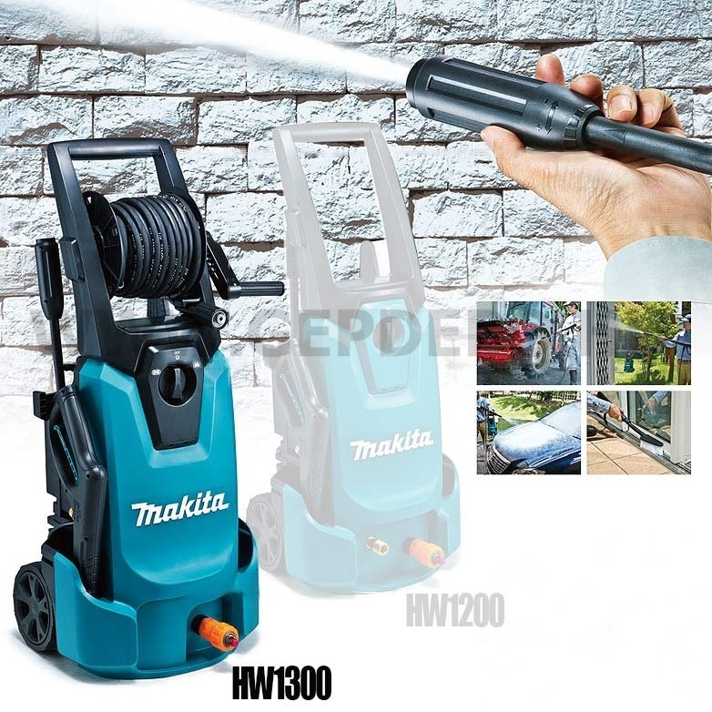 Máy xịt rửa cao áp Makita HW1300 là lựa chọn lý tưởng khi mua máy rửa xe có hiệu năng mạnh mẽ và hút nước thông minh. Sản phẩm sử dụng động cơ chổi than, lõi dây đồng bền bỉ có công suất lên đến 1.800W, áp lực phun 130 bar tiêu thụ nước 420 lít/giờ. Máy có tính năng tự hút nước chỉ cần mồi lúc ban đầu, trục cuốn dây có khóa, ống phun gia cố thép, v.v.